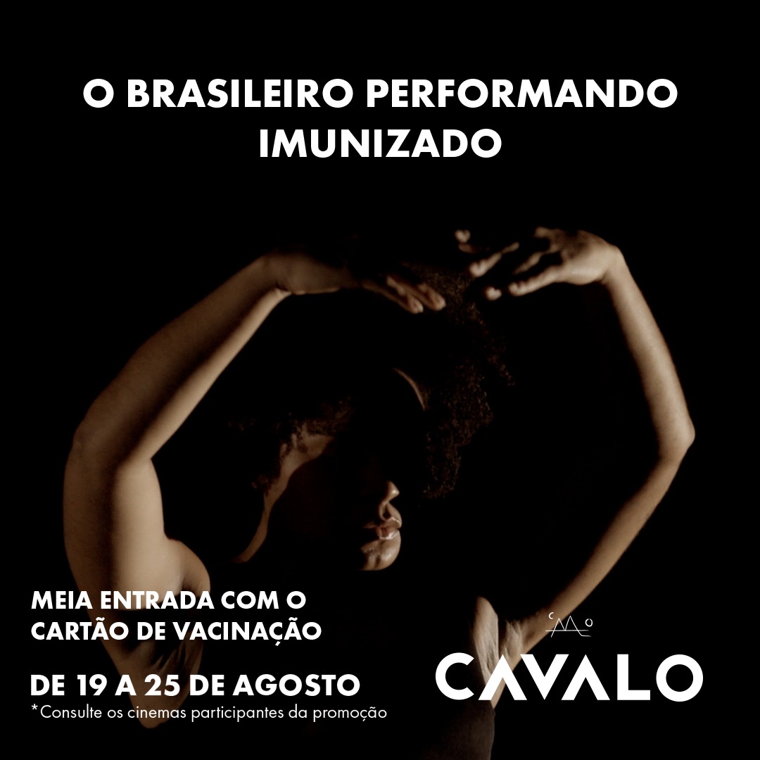 A partir desta quinta-feira passa a valer também a promoção O BRASILEIRO PERFORMANDO IMUNIZADO, que oferecerá meia-entrada nas sessões de CAVALO a quem apresentar o seu cartão de vacinação da Covid-19 nos cinemas de São Paulo, Manaus, Maceió e Fortaleza.